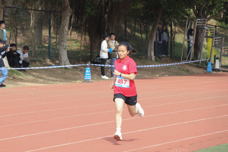 11月11日上午,女子800米的预决赛在观众的激烈呼声中准时开赛,清脆的枪响声彻天际,运动健儿们奋力疾跑,我系农秀婷起跑加速超越冲刺,一步一步跑向胜利,以3’00”21的优秀成绩斩获800米女子一名。
