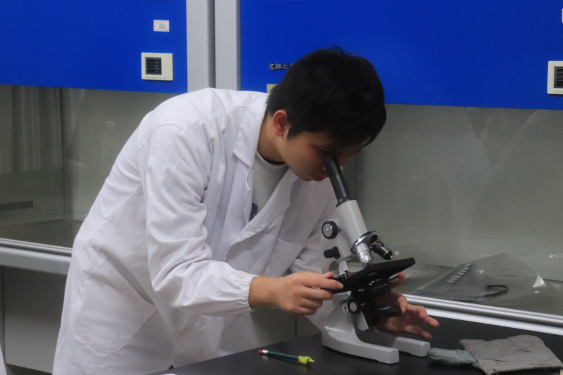 比赛选手在显微镜下观察微生物