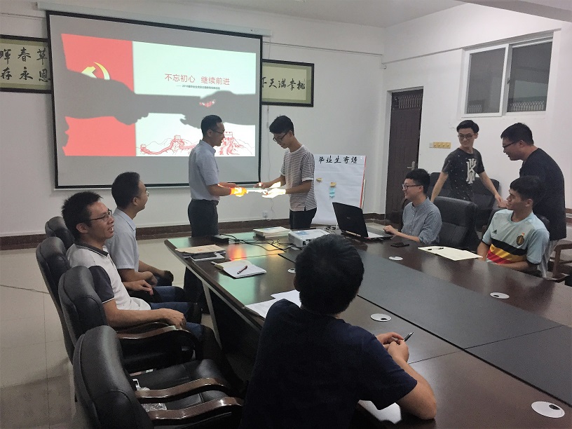 为学习贯彻习近平新时代中国特色社会主义思想,进一步增强2018届毕业生党员的党员意识,教育和引导他们在升学和工作上继续保持优异表现,6月20日下午,我系在探源楼5207会议室举行毕业生党员主题教育活动。系党总支书记石有总老师出席活动,并在活动上对2018届毕业生寄语。系党总支副书记兼学工组组长黄运堪老师、系辅导员吴祖枝老师、王震老师和2108届毕业生党员参加了会议。