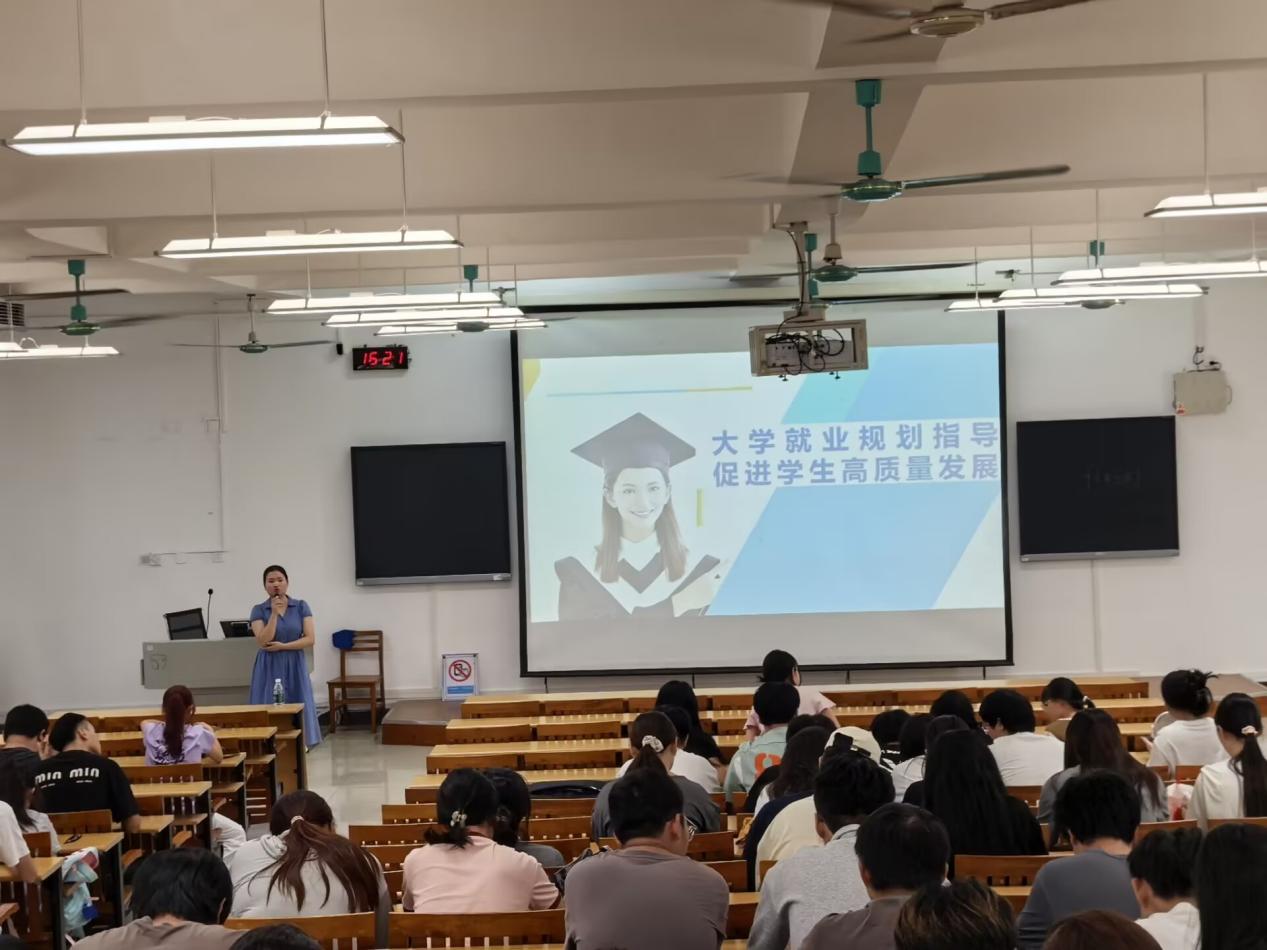 讲座中,李福振重点围绕“专升本”备考、学业规划与职业规划三大核心内容展开。在“专升本”方面,详细讲解备考流程、关键时间节点与高效复习方法,提醒学生关注考试政策变化;学业规划上,建议学生结合专业特点,合理安排课程学习与技能提升,明确各阶段学习重点;职业规划板块,结合行业发展趋势,分析不同就业方向的需求的,指导学生根据自身情况选择适配路径。