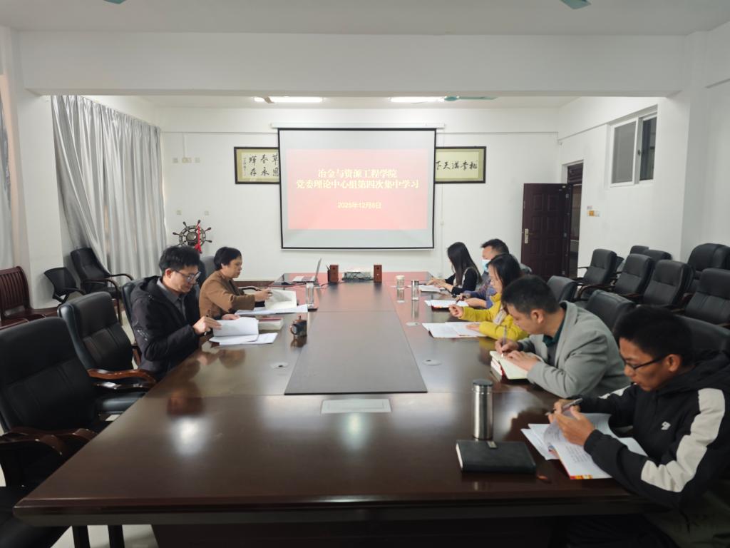 12月8日上午,冶金与资源工程学院在探源楼5207会议室召开2025年第四次党委理论学习中心组集中学习会。会议由学院党委书记韦国才主持,党委理论学习中心组成员参加学习。
