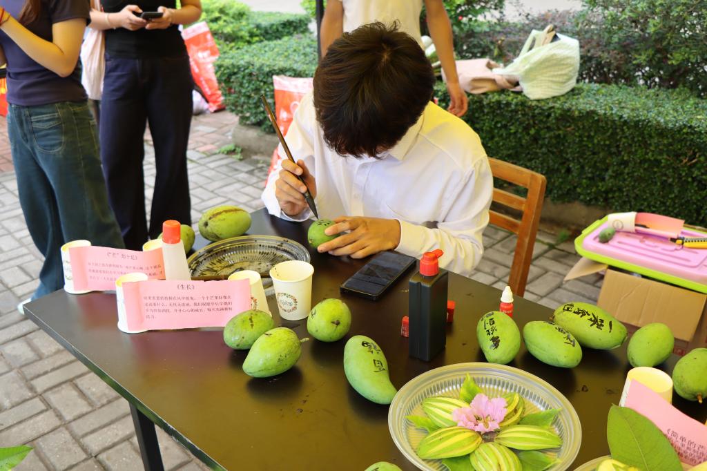 在书画展区,80余幅书画作品集中展出,其中雷春霞创作的《芒果树下的早八课》串联桂工学子从入学到毕业的成长历程。现场制作的芒果酒甜品,口感独特,富有地域特色,吸引了众多师生驻足品鉴。美食展区则汇集了椒盐芒果酸野等10余种创意美食,受到在场师生广泛好评。机械专业学子运用数控工艺制作芒果工艺作品,实现了传统文化与现代工艺的融合。