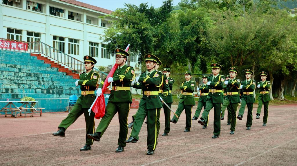上午8时,国旗护卫队迈着稳健的步伐护送国旗进场,伴随着雄壮激昂的《义勇军进行曲》,五星红旗冉冉升起。全场师生庄严肃立,面向国旗行注目礼,齐唱国歌,心中激荡着对祖国的崇高敬意和无限热爱。