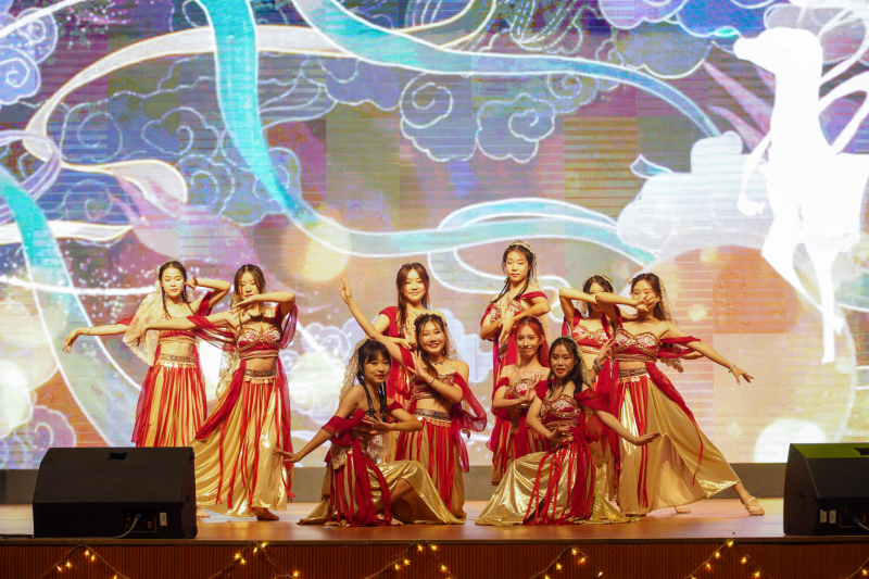 晚会以歌舞类、器乐类、舞台剧和情景剧等多种艺术表演形式,分为“矢志不渝永跟党走”、“砥砺前行逐梦桂工”、“踔厉奋发强国有我”三个篇章,呈现了一台青春、欢快、昂扬和奋进的盛会。伴随《国潮崛起》龙狮表演,晚会正式拉开帷幕。《永不言败》歌曲唱出了青年一代大学生逐梦路上不畏艰辛、勇攀高峰、永不言败的精神气概;《用心逐梦》舞台剧讲述了一群新时代少年们跌跌撞撞、全力奔跑的逐梦时光;《民族团结一家亲》舞蹈以壮族姑娘独舞为引子,淋漓尽致地展示出了各民族团结一家亲的欣欣向荣场景。在全体领导、嘉宾和演员们同台合唱《我和我的祖国》歌声中,晚会画上了圆满的句号。