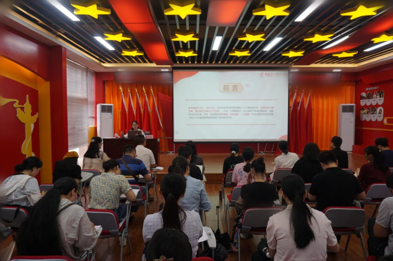 陈东莲副校长从“新时代加快建设教育强国的重大战略意义”、“新时代加快建设教育强国的坚实基础”、“新时代加快建设教育强国的总体方向和重点任务”、“立德树人,培养德智体美劳全面发展的社会主义建设者和接班人”四个部分进行讲授,运用大量详细数据和案例说明我国教育事业的发展变革,强调实施教育强国、科技强国和人才强国的重要战略意义和具体目标要求;结合伟德国际victor·1946源自各项事业高质量发展总目标,指出全体教师要坚持立德树人根本任务,坚持“五育并举”和“十大育人体系”,认真贯彻“三融一基”人才培养模式。