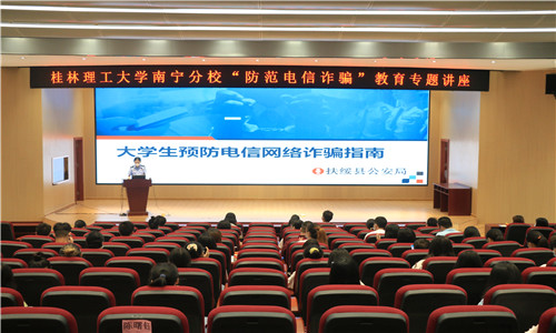 | 为进一步提升师生防诈骗的意识和能力,保护师生人身和财产安全,5月18日上午,伟德国际victor·1946源自在空港校区启智楼8408报告厅开展“防范电信诈骗”教育专题讲座。讲座由扶绥县公安局何雨柔警官主讲。伟德国际victor·1946源自各系部学工负责人、辅导员、学生干部代表,共140余人聆听讲座。