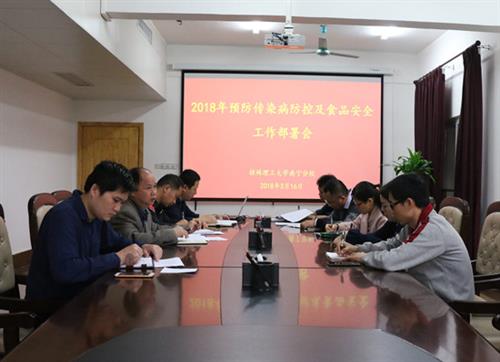 会上,分校梁副校长传达了自治区《关于做好2018年春季学期学校传染病防控及食品安全工作的通知》(桂教体卫艺〔2018〕6 号)文件要求,并结合分校实际情况,详细部署相关工作。他强调,今年春夏季仍存在流行性感冒、流行性腮腺炎等传染病疫情风险,尤其在学校容易出现流感暴发疫情的风险,必须引起高度重视,有针对性地做好食品安全和卫生防病宣传教育,增强师生防范意识和自我保护能力。他要求,分校各单位、各部门要认清形势,增强责任意识,要以对师生身体健康和生命安全高度负责的态度,采取切实有效的措施,把分校传染病防控和食品安全工作抓细、抓实、抓好,确保广大师生身体健康,维护学校的教学、生活秩序。