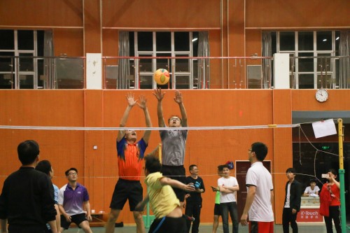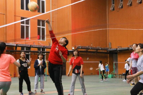在比赛中,我系教职工团结协作,默契配合,他们移动迅速、身手敏捷地托球、传球、扣球;在旁边观看的教职工和同学们则不断地加油喝彩,现场气氛紧张又欢乐。我系分工会在当天小组比赛中,男队惜败于图书馆分工会,女队惜败于冶金系分红会,但我系教职工在第二场小组比赛中,男队女队均胜出。