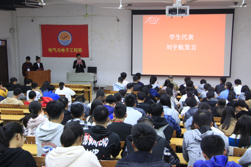 会议初始,学生会纪检部刘宇航同学上台代表全体学生干部表态发言,他提出了学生干部们要做到不迟到不缺勤,好好学习,不挂科,各部门之间要团结一致,充分发挥带头作用等内容,并且与学生干部们共勉“工作中责任心与积极性时刻具备,工作中方式方法要灵活多变”。罗勇老师发言,希望干部们通过培训班培训做到"学有所思,学有所成”,借助这样的形式提高自己的工作能力。