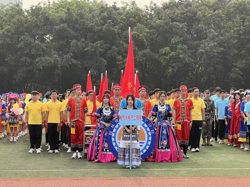 伴随着欢快的运动员进行曲,我系表演方块队身着五彩缤纷的民族服装,迈着铿锵有力的步伐、面带微笑走到主席台前,他们以斗志昂扬、朝气蓬勃的精神状态,为我们带来了一场传统的民族表演视觉盛宴,显示出我系学子的朝气和热情。