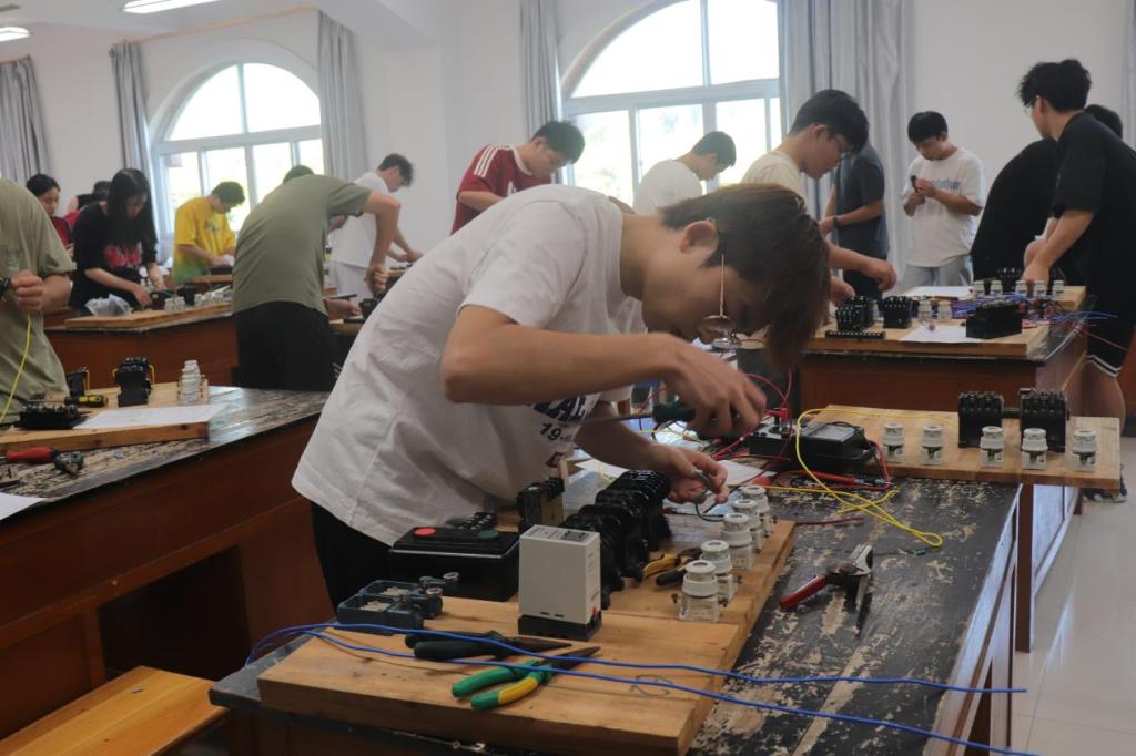 本次比赛考验同学们的专业知识能力与极强的动手能力。指导老师便在比赛开始之前给予参赛选手十分钟来检查元器件,防止因器材问题影响比赛。在比赛前,每位选手都自信满满、蓄势待发。比赛中他们专心致志、泰然自若。本次活动在指导老师的指导监督下顺利进行。