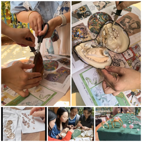 3月26日下午,女职工们体验“开蚌取珠”的奇妙旅程。活动中,大家挑选河蚌,轻敲慢启,小心翼翼剥开蚌壳,在莹润的蚌肉中探寻天然珍珠的踪迹。随着一颗颗珍珠跃然掌心,女职工们细心剥离薄膜,用海盐轻柔打磨,见证珍珠从粗糙原石到温润生辉的蜕变。随后,在老师的示范下,女职工们互鉴灵感、协作创作,根据珍珠的色泽、形状,精心设计镶嵌,将天然馈赠化作项链、耳饰、胸针等自己专属的艺术品。