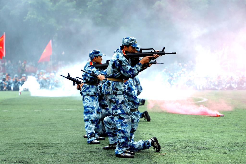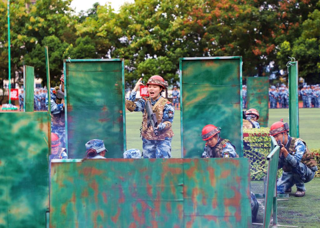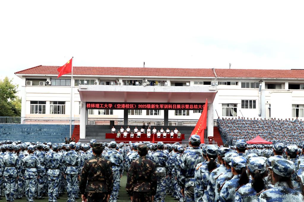 上午9时,在高亢嘹亮的国歌声中,学校党委副书记黎贞崇宣布军训科目展示暨总结大会开始。