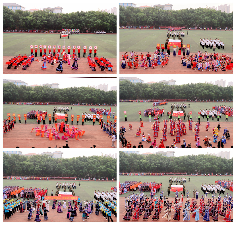 开幕式上,国旗队、会旗队步伐整齐,庄严护卫国旗与运动会会旗入场。各学院方阵创意编排、特色鲜明,“龙狮戏水,高跷凌云”“民族欢舞—盛世同心”“壮乡绣球情”等节目依次亮相,充分展现民族体育教学成果与青春风貌,将现场气氛推向高潮,呈现一场民族文化与体育精神交融的精彩盛会。