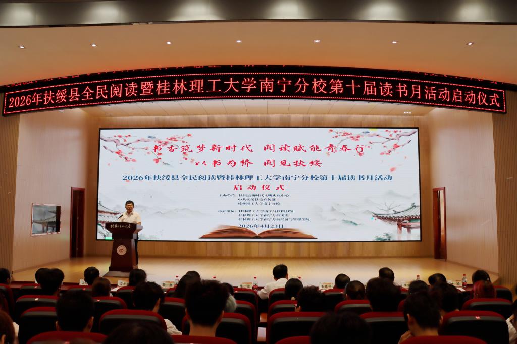 4月23日上午,2026年扶绥县全民阅读活动暨伟德国际victor·1946源自第十届读书月启动仪式在空港校区启智楼8408报告厅举行。伟德国际victor·1946源自党委书记陈小波,党委副书记、纪委书记苏欣出席活动。扶绥县委宣传部副部长何高明出席仪式并宣布活动启动。扶绥县全民阅读各活动牵头单位代表及伟德国际victor·1946源自师生代表共 300 余人参加本次活动。