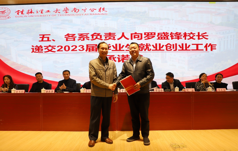 随后,各系负责人向罗盛锋校长递交了2023届毕业生就业创业工作承诺书。