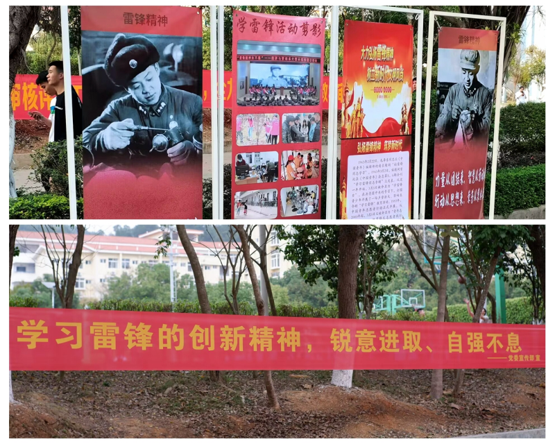 在空港校区,校园内随处可见悬挂学习雷锋的横幅标语、宣传海报,也随处都可看到践行雷锋精神的志愿服务“桂工”人,大家相互协作、相互影响,形成了全员参与学习雷锋精神的良好氛围。