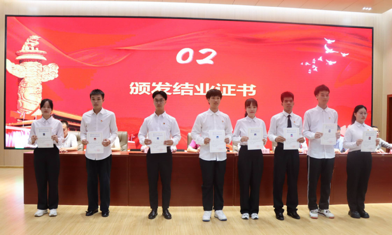 出席典礼的领导为学员代表颁发“结业证书”。学员代表黄雯同学作学习体会交流发言。