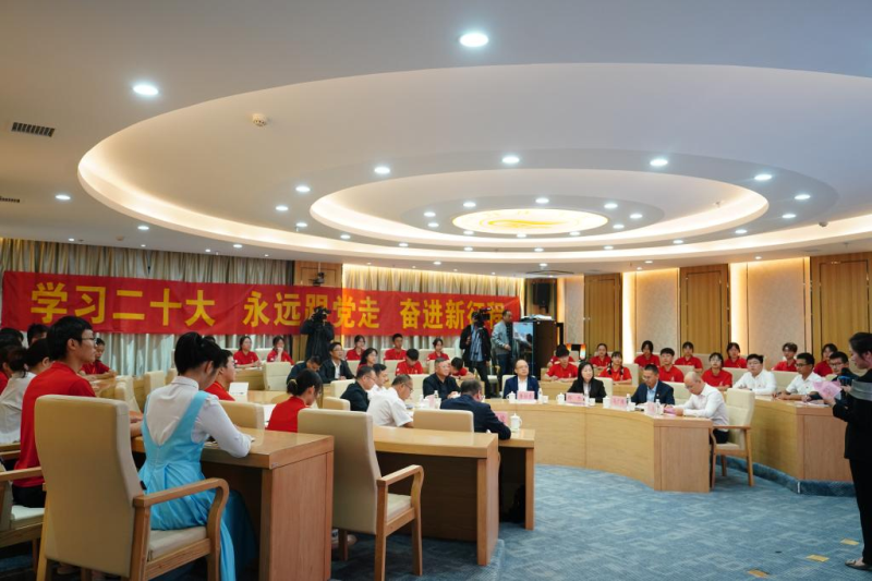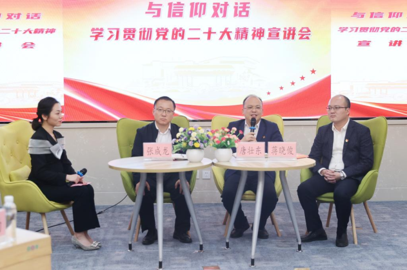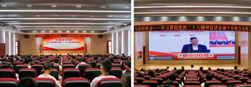 为深入学习宣传贯彻党的二十大精神,更好团结引领广大团员青年紧跟党奋进新征程,夺取新胜利,11月15日下午,学校在雁山校区大学生创新创业园案例研讨室举行“与信仰对话——学习贯彻党的二十大精神宣讲会”。学校党委书记邓军,党(校)办、组织部、宣传部、统战部、学工部(处)、马克思主义学院、校团委主要负责人,二级学院党委副书记、团委书记代表,和学校第十二期青年马克思主义者培养工程大学生骨干培训班学员齐聚一堂,共同学习领会党的二十大精神。本次活动采用“现场宣讲+线上直播”的形式同步进行。