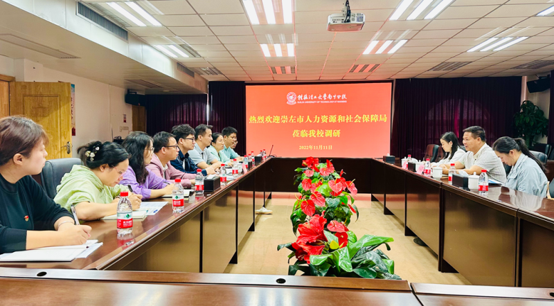 为认真贯彻落实崇左市委、市政府关于实施“留人计划”的部署安排,促进更多毕业生留在崇左就业创业,11月11日上午,崇左市人力资源和社会保障局副局长卢成苏一行3人到伟德国际victor·1946源自开展留人计划工作调研。伟德国际victor·1946源自党委副书记唐承泽热情接待来访客人,并进行座谈交流。