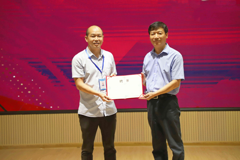 聘任仪式上,学校校长解庆林分别为刘禹麒总经理和梁文毫副总经理颁发客座教授聘书。