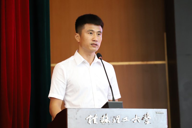 校友代表,学校1998级有色金属冶炼1班校友,河南豫联能源集团有限责任公司党委委员、河南中孚铝业有限公司总经理覃海棠先生在发言中回顾自己毕业20年来的工作学习经历,勉励学弟学妹们敢于立大志、走好当下路,通过直面艰难险阻去获得成功。他希望同学们继承和发扬“桂工精神”,以此时此刻作为新起点,不断拼搏,为梦想不断前行。