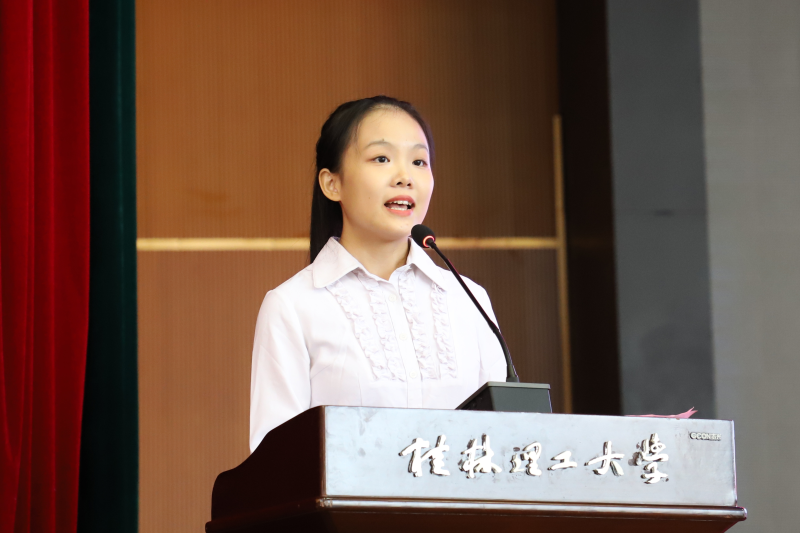 2020级在校生代表、土木与测绘工程系工程造价本1班吴松霖同学发言,她建议学弟学妹们要志存高远、勇敢追梦,要德才并重、担当时代责任,要勇于开拓、不负韶华。