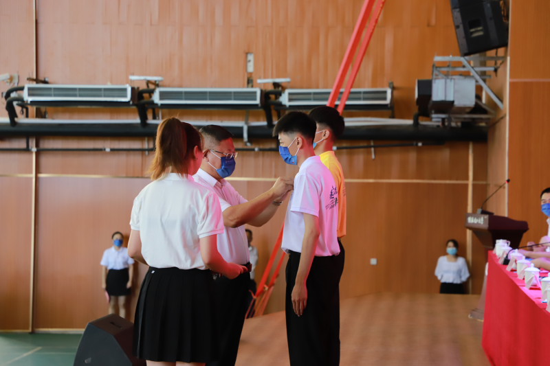 学校党委书记邓军为新生代表佩戴校徽