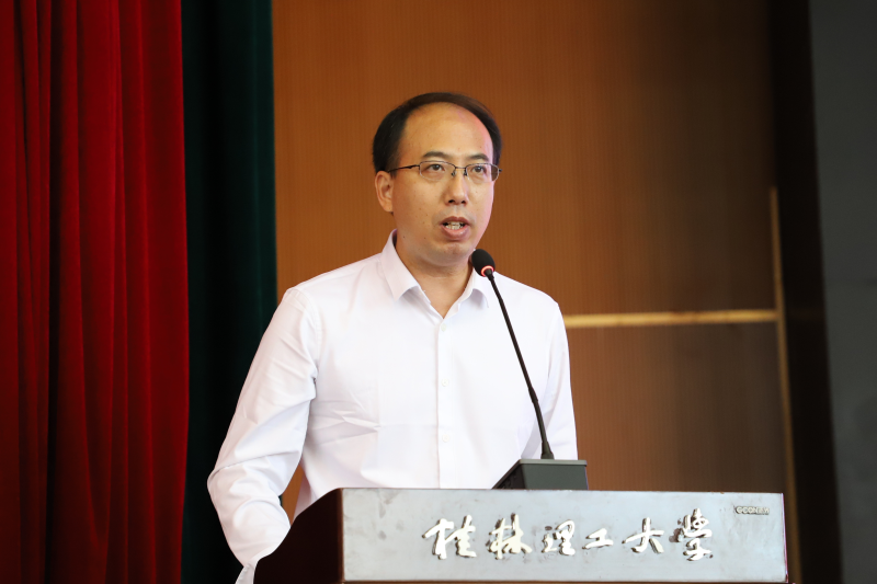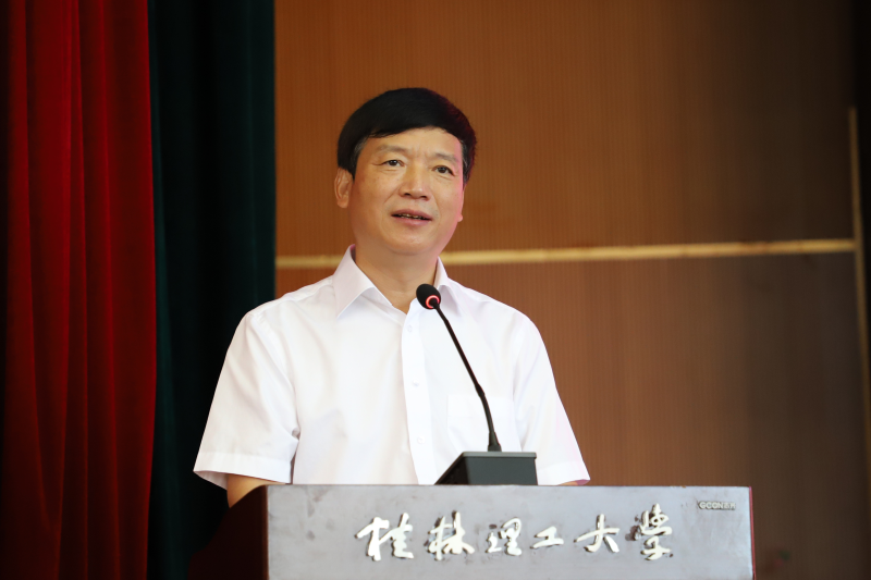 学校校长解庆林在讲话中代表全校师生员工向新加入桂工大家庭的同学们表示热烈欢迎,向为同学们成长成才付出了辛勤汗水的老师、家长们表示衷心感谢。结合习近平总书记在中国人民大学考察时的重要讲话,解庆林对全体2022级新生提出三点希望:一是要追寻“信念之光”,做中国特色社会主义的坚定拥护者;二是要追寻“品德之光”,做社会主义核心价值观的忠实践行者;三是要追寻“奋斗之光”,做民族复兴伟业的坚强生力军。他勉励同学们要始终牢记习近平总书记的殷切嘱托,坚定不移听党话、跟党走,发愤图强,砥砺前行,努力成长为堪当民族复兴重任的时代新人。