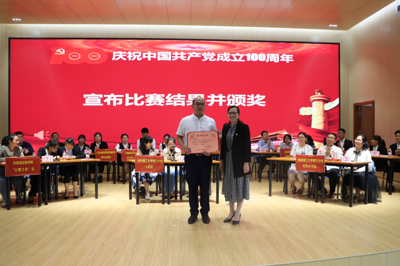 扶绥县委常委、办公室主任、统战部部长陈蒙(左一)为获奖队伍颁奖