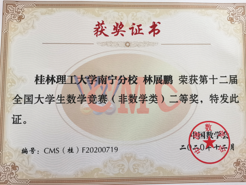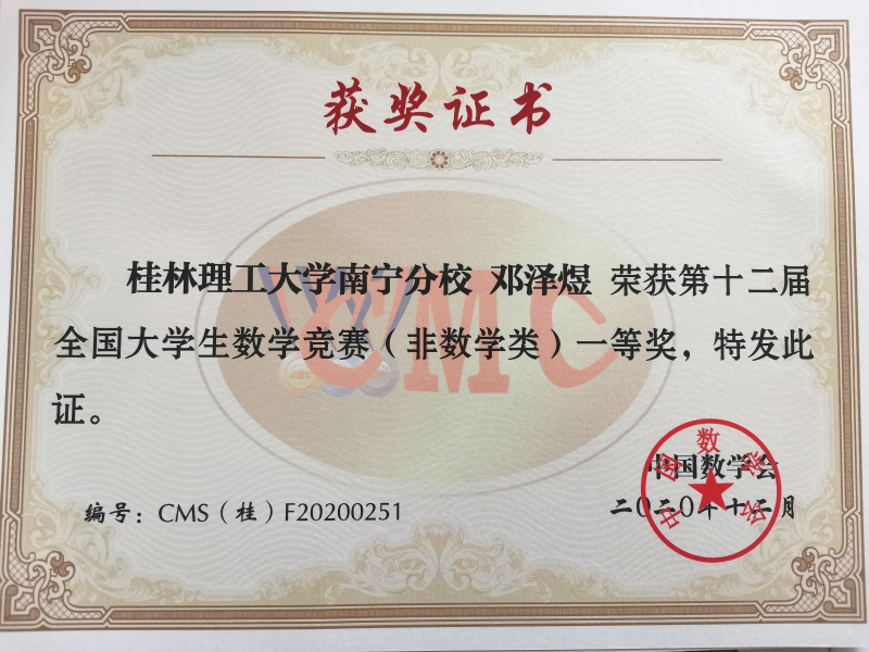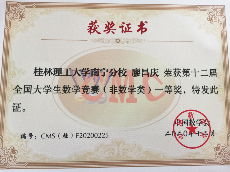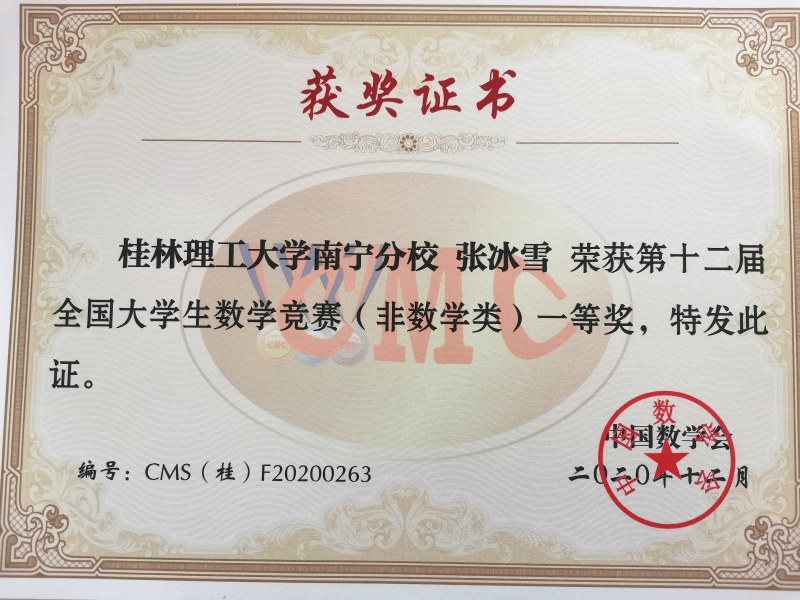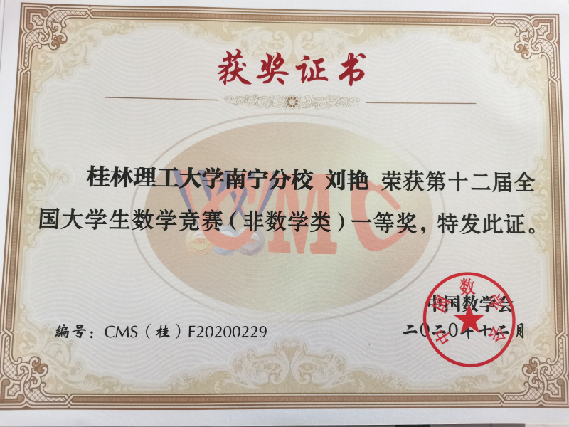 近日,2020年第十二届全国大学生数学竞赛广西赛区在伟德国际victor·1946源自空港校区举行。伟德国际victor·1946源自5名学子斩获一等奖,4名学子斩获二等奖,获奖率为100%。