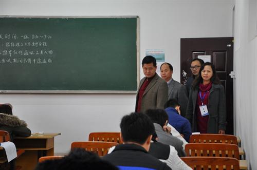 考试期间,院长王文在副院长陈东莲、梁锦叶的陪同下,带队到考务办公室、考场等地现场指导工作。为确保本次考试工作顺利进行,我院在考前对考试工作进行了周密部署,组织召开了各部门考前协调会和考务人员培训会,并做好了各类突发事件的应急预案和准备工作,为考试顺利进行提供了坚实保障。学院通过主题班会、宣传展板、广播、横幅等多种形式加强考生诚信考试教育,并组织学生签订了诚信考试承诺书。