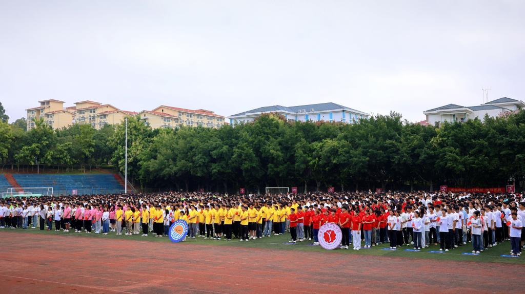 上午8时,国旗护卫队迈着稳健的步伐护送国旗进场,伴随着雄壮激昂的《义勇军进行曲》,五星红旗冉冉升起。全场师生庄严肃立,面向国旗行注目礼,齐唱国歌,心中激荡着对祖国的崇高敬意和无限热爱。