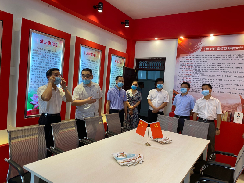 学校纪委书记韦学敏一行实地查看了我系廉政文化室和廉政文化长廊,听取了我系的系部情况介绍。