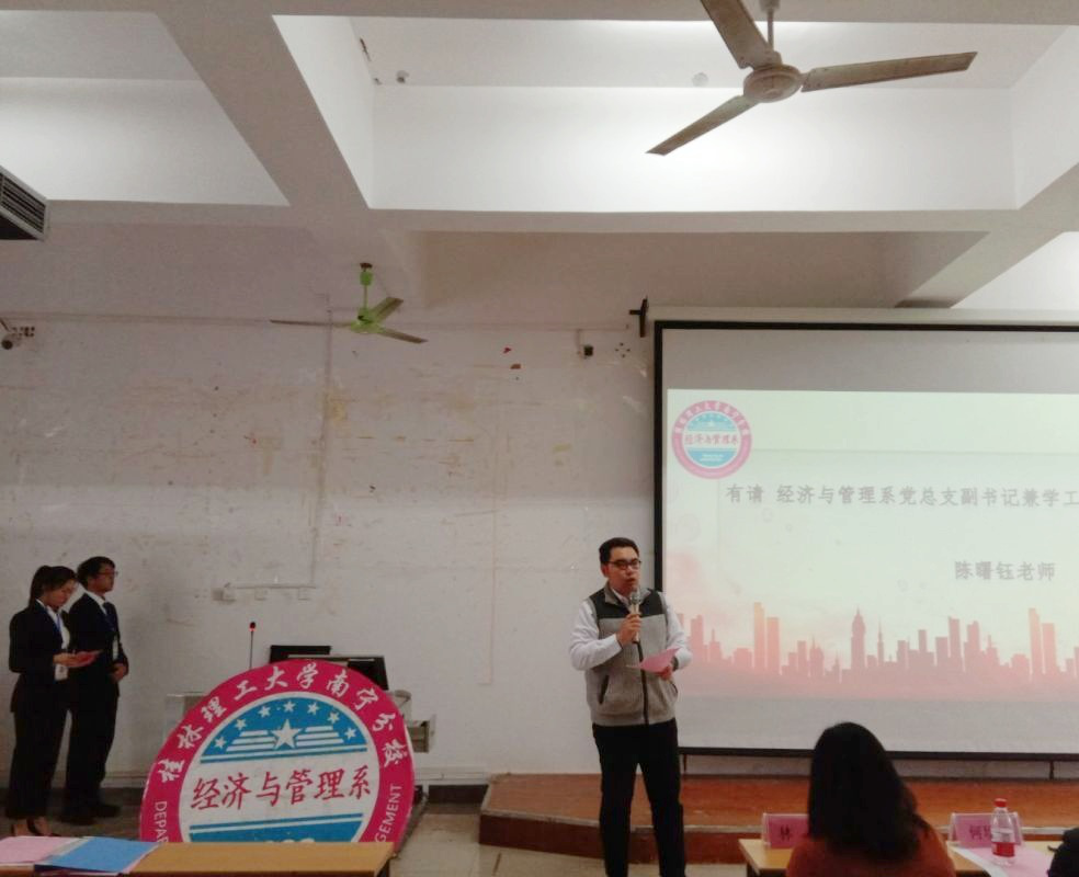 为加强学生考风考纪意识以及增强学生团体凝聚力,经济与管理系于2020年1月3日下午在启智楼308教室召开了学生团体述职与考风考纪动员大会,经济与管理系党总支副书记兼学工组组长陈曙钰以及全体学工组老师出席了本次会议。