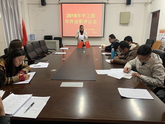 2019年1月4日上午,经济与管理系于7210会议室召开2018年终述职评议会,经管系党总支书记梁勤、党总支副书记兼学工组长陈曙钰、团总支书记范立添出席,全体辅导员参加会议,会议由陈曙钰副书记主持。本次述职大会,旨在对2018年系部学工工作进行全面盘点及反思,为新的一年学生工作进行更好地规划。