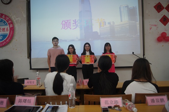 经济与管理系经过广泛宣传、动员,学生们积极参与,经过初赛选拔后10支队伍进入决赛,各参赛团队通过抽签决定出场顺序,各参赛团队以饱满的自信心、生动形象的语言、海量的知识储备迎接比赛。比赛过程中,团队成员之间配合默契、团结协作,面对困难迎刃而解,赢得了在场老师的肯定和对手的称赞。经过一场实力与智慧的较量,财管18—2班获得一等奖、市营18—1班获得二等奖、会展本18-1班获得三等奖、酒管18-1班获得优秀奖、旅管18-1班获得优秀台风奖。随后,我系艺术团学生带来歌曲演唱,不仅缓和了紧张的比赛气氛,也将现场气氛进一步推向高潮。比赛结束后,该系商英教研室戴杰老师在点评中肯定了参赛团队的优秀表现,同时对其中存在的不足提出建议,希望参赛团队能够有则改之,无则加勉。