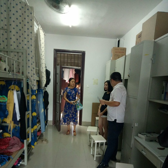 经管系全体学工人员首先查看了新生宿舍的卫生状况和配套设施设备,对新生宿舍走廊、室内门窗、阳台的卫生安全情况和床铺、衣柜、空调以及水电等设施设备进行了细致的检查。在查看新生宿舍后,陈曙钰副书记要求尽快整改落实发现的问题,一定要认真细致地做好迎新工作,确保新生住的安心,住的舒服。