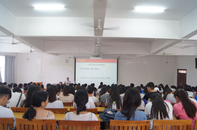 讲座中,钟金鹏先生主要围绕自身创业历程、全球制造业发展历史、中国企业运行模式、大学生就业创业,“一带一路”倡议和全球工业转移事件展开。钟金鹏先生详细分析了大学生目前的就业情况,着重阐述在“十三五”期间的就业压力,他认为:在当今这个日新月异的社会里,大学生要客观评价自己,树立良好的心态,培养良好的综合素质。并提出建议:一是要加强学习尤其是英语口语方面的学习;二是要学会用互联网思维去看待问题,熟练掌握办公软件的使用。最后在场的同学们踊跃发言,就大学生就业问题和钟先生进行了交流。