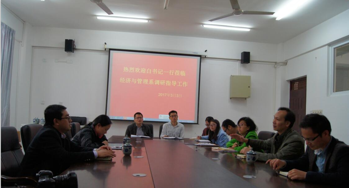 3月3日上午,分校党委书记白永生深入经济与管理系调研指导工作,并在空港校区景明楼210会议室召开座谈会。统战部宣传部主任苏欣,经管系主任周子平,副书记黄薇薇,副主任劳国炜,以及系全体学工人员参加座谈会。