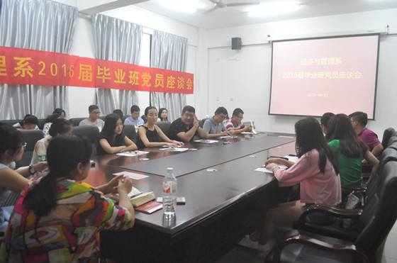6月22日晚,我系党总支在空港校区景明楼210会议室召开2016届毕业班党员座谈会。我系党支部书记梁勤、副书记黄薇薇、各支部书记与2016届毕业班党员参加了座谈。会议由第二党支部书记黄维主持。