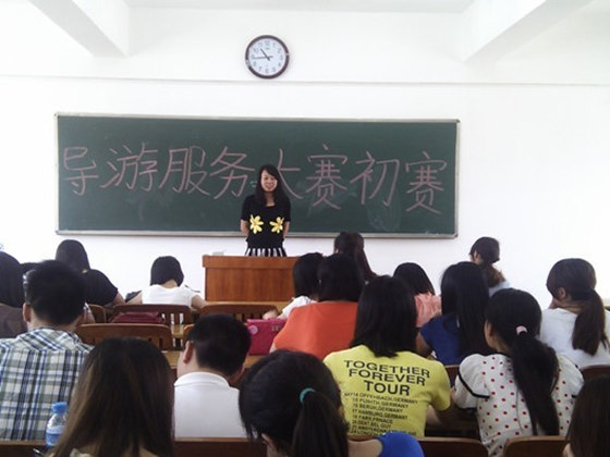 为加强大学生“四种能力”培养,进一步提升我系旅游管理专业学生的专业技能,5月23日下午2时许,由学院团委主办,我系学生会和旅游协会共同承办的第五届“创新杯”科技活动月之导游服务竞赛决赛于8101教室举行。我系学工组长廖秋凉、李长春、陈平东、黄泽楷、白永琴以及基础部刘翊等6位老师出席并担任本次竞赛评委。