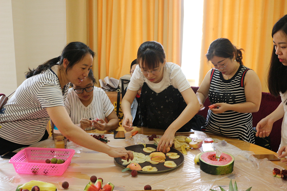 为了丰富老师们的校园生活,提高老师们的团队合作意识,增进老师之间的交流,7月12日下午,经济与管理系分工会在实训楼B504开展“缤纷夏日,七彩绚丽”水果拼盘比赛。