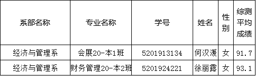 根据《伟德国际1946推荐优秀应届本科毕业生免试攻读硕士学位研究生工作管理办法》(桂理工研〔2021〕10号)和《关于做好经济与管理系推荐优秀应届本科毕业生免试攻读硕士学位研究生工作的预通知》文件要求,经济与管理系2024年推免生遴选工作领导小组研究决定,拟推荐会展经济与管理2020级本1班何汉湲、财务管理2020级本2班徐丽露参加分校2024年优秀本科毕业生免试攻读硕士学位研究生评选。现将系部申请学生的综合成绩情况公示如下,公示期为2023年9月11日至2023年9月13日,共3天。