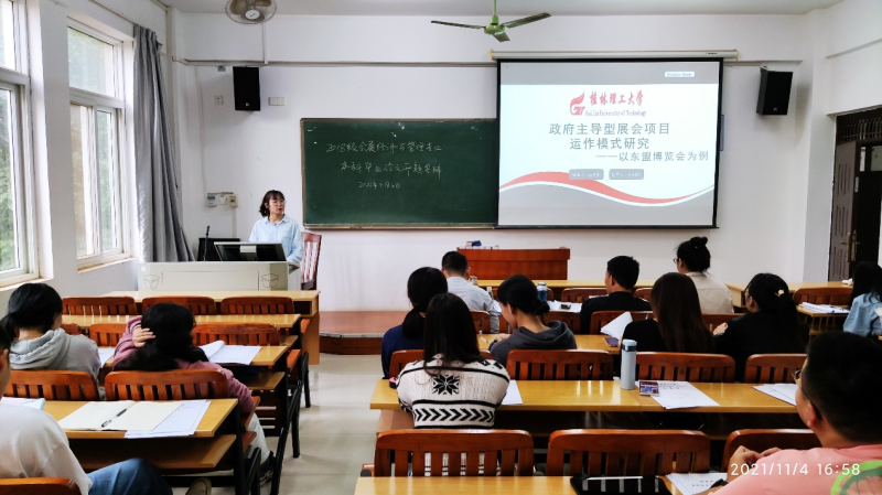 为规范会展经济与管理专业本科生毕业论文管理工作,提高学生毕业论文(设计)质量,考查学生对所著论文论题的认识程度和当场论证论题的能力。2021年11月4日,会展经济与管理教研室在6206、6306、6308、6310、6311开展了2018级会展经济与管理专业本科毕业论文(设计)开题答辩工作,经管系主任周子平、副主任劳国炜、副主任李军辉亲临现场进行现场检查和指导。