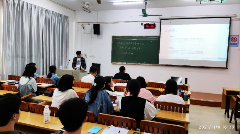 本次开题答辩工作组织规范,答辩现场秩序井然,各组答辩老师认真负责。学生答辩均采用PPT汇报,从研究背景、研究方法、设计思路等方面进行答辩。各组答辩老师从专业方面提出相关问题,并在研究方法的选择、设计的可行性、数据的准确性等方面对学生进行了指导,给学生撰写论文提供了明确的方向。