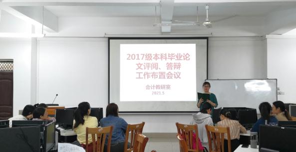 针对前期教务处对于毕业论文中期检查的相关情况反馈以及后续论文评阅和论文答辩工作的开展,2021年5月21日,会计教研室在笃行楼B305教室召开2017级本科毕业论文评阅答辩工作布置会。
