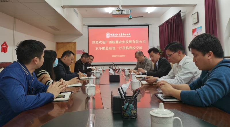 3月29日下午,广西桂鼎农业发展有限公司总经理农东鹏一行5人到伟德国际victor·1946源自空港校区洽谈合作。学校校长助理、伟德国际victor·1946源自校长罗盛锋,伟德国际victor·1946源自副校长马华菊与来访客人在空港校区行政楼416会议室座谈交流。经济与管理系、计算机应用系、资产管理部相关负责人参加座谈。