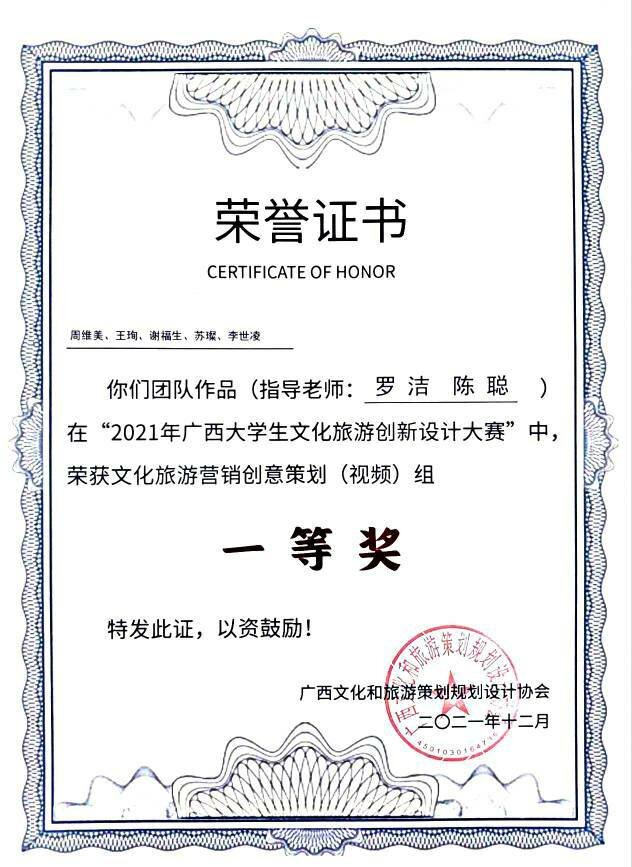 近日,由广西文化和旅游策划规划设计协会主办,伟德国际1946旅游与风景园林学院、广西旅游产业研究院、广西北部湾旅游发展研究院承办的2021年广西大学生文化旅游产品创新设计大赛圆满落幕。大赛共有全区15所院校选拔出的285支队伍参赛,在文化旅游线路策划、旅游文创产品创意设计、文化旅游营销创意策划(视频制作)三个项目中竞争角逐,最终遴选出30支队伍进入总决赛。