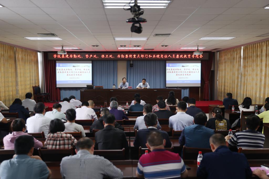 为深入落实全面从严治党要求,推进清廉学校建设,坚持把纪律挺在前面,做细做实日常监督,切实增强重点领域、重点岗位领导干部和工作队伍的廉洁从业意识和拒腐防变能力,5月18日,学校在雁山行知楼A406会议室召开基建后勤处、资产处、保卫处、后勤集团重点部门和关键岗位人员廉政教育专题会。学校党委常委、纪委书记韦学敏出席会议并作廉政教育专题报告。